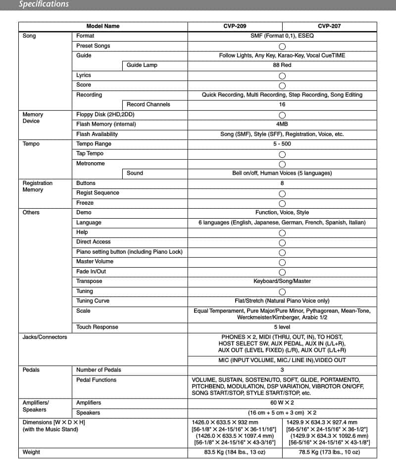 Piano điện Yamaha CVP 207 là model cao cấp của hãng Yamaha, với kiểu dáng sang trọng, thiết kế hiện đại. CVP 207 có rất nhiều chức năng , vừa là một cây piano điện, vừa là một organ chuyên nghiệp với hệ thống voice và style đa dạng. Màn hình màu LCD cỡ lớn trên đàn với các trình đơn sắp xếp hợp lý cùng không gian điều chỉnh chức năng rộng rãi và thoải mái với rất nhiều nút bấm cho phép bạn dễ dàng tùy chỉnh các chức năng phong phú của đàn. Tuy là một model đàn sản xuất đã khá lâu nhưng chất lượng âm thanh của CVP 207 khá hay được phát qua 2 loa công suất lớn lên đến 60W đủ sức lấp đầy một khán phòng cỡ lớn.